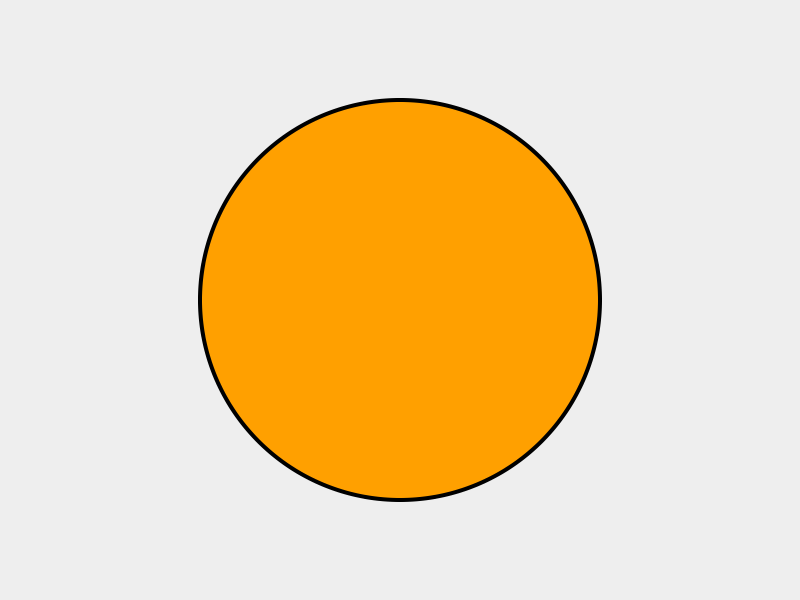 circle(300, 200, 180, stroke="#000000", fill="#FFA000", weight=4);