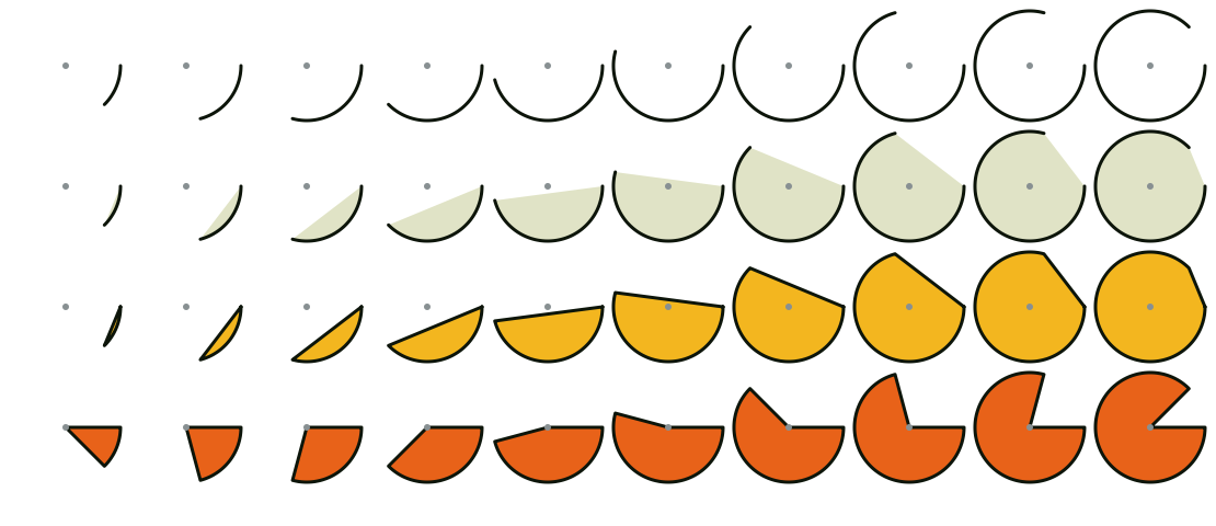 arc(x + i * stepX, y + rowGap * 3, radius, startStart, stop, pie=true);