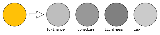 mode | - | - | Mode to convert: luminance (by default), rgbmedian, lightness, lab |